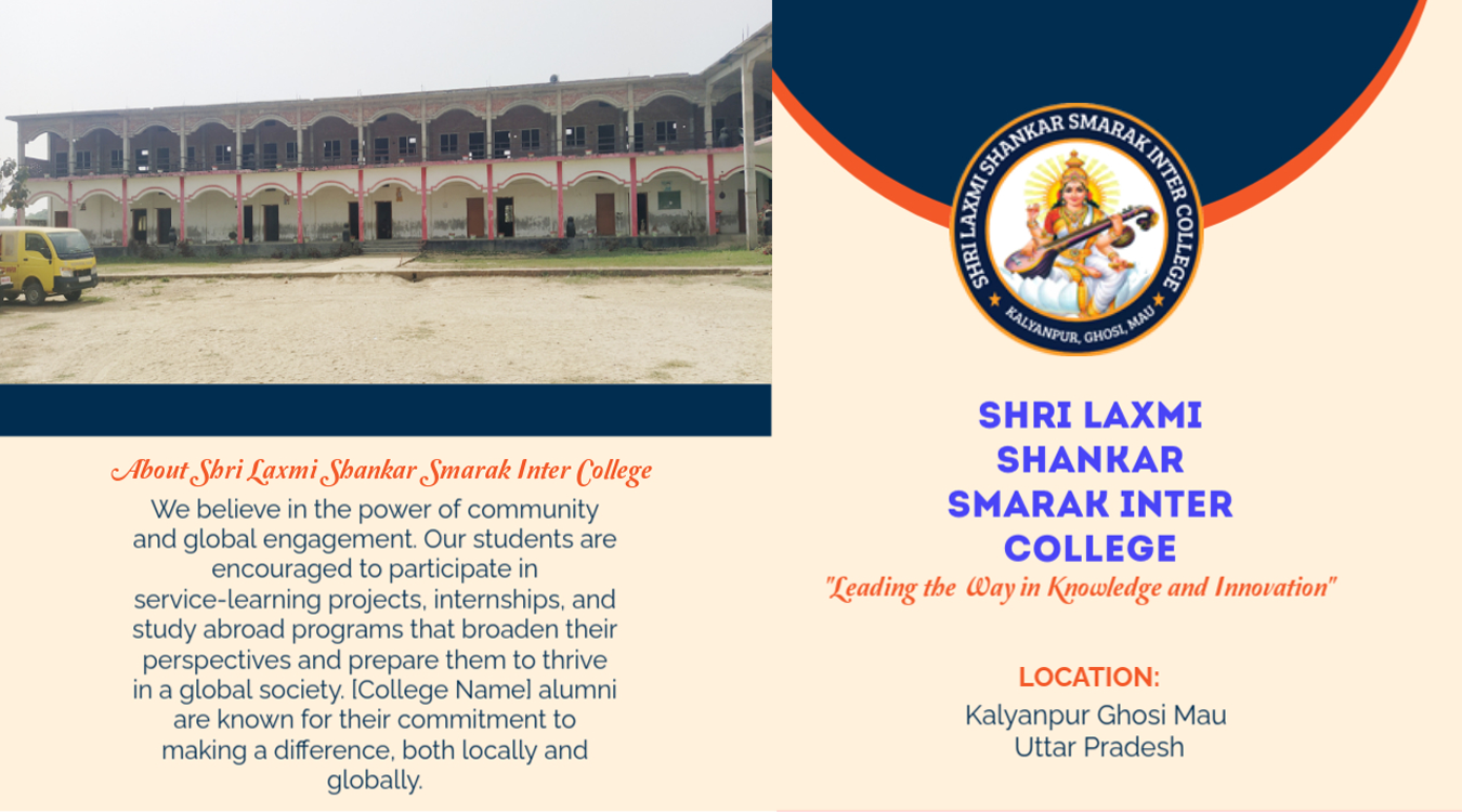 Shri Laxmi Shankar Smarak Inter College is a noble endeavour by Late Laskshmishankar Yadav that has been in the domain of education since 2016 to bring about a quantum improvement in school education. It is affiliated Madhyamik Shiksha Parishad Uttar